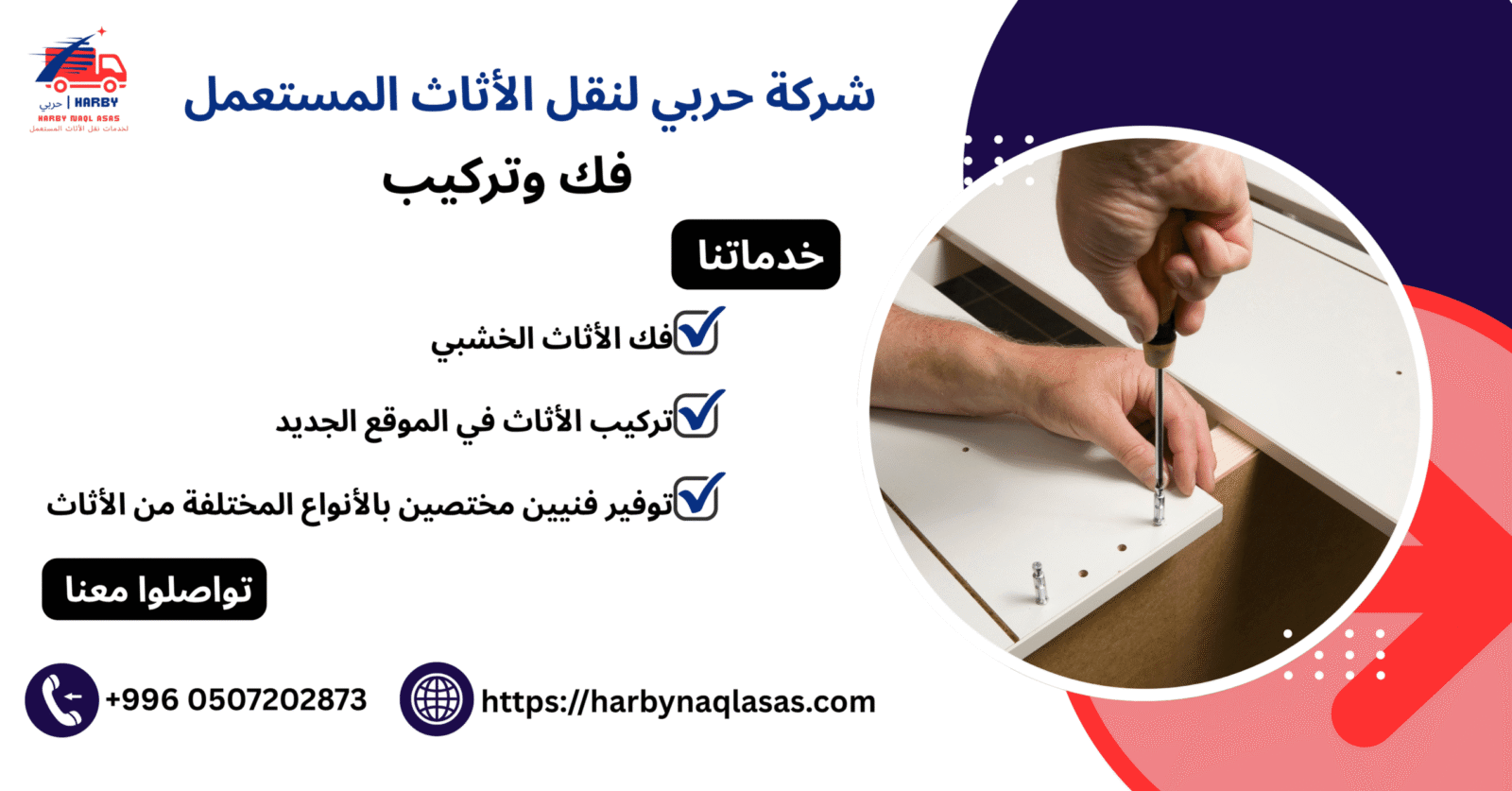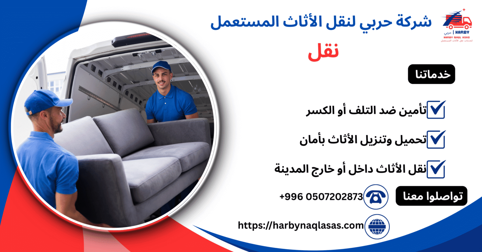 في شركة حربي لا ننقل مجرد أثاث بل ننقل راحة البال نحن خبراء في نقل الأثاث المستعمل في السعودية باحترافية عالية لنقدّم لك تجربة سلسة وآمنة وخالية من التوتر من لحظة التواصل وحتى وضع آخر قطعة في مكانها الجديد نهتم بكل تفصيلة في عملية النقل من الفك والتركيب والتغليف إلى الحمل والنقل والترتيب لنضمن لك انتقالا مريحا دون فوضى او قلق.